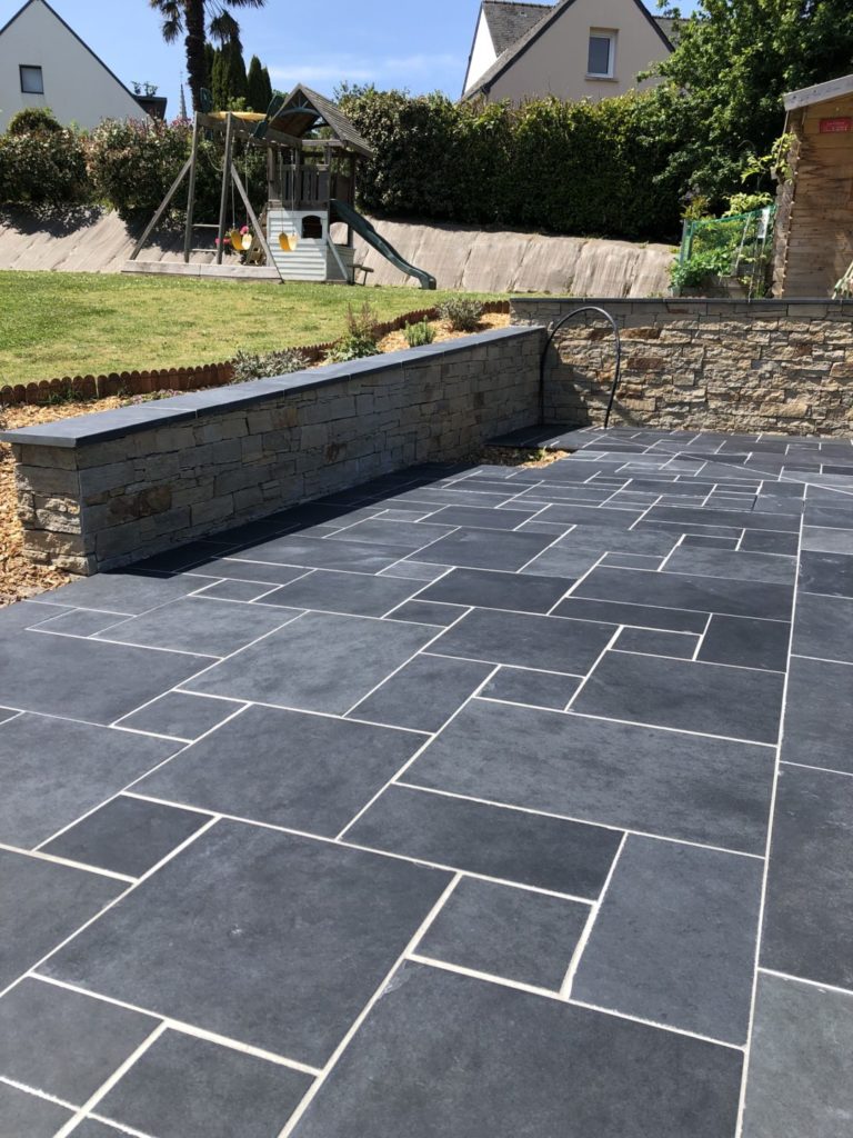 Muret pierre sèche - couvertine en pierre Fouesnant Muret pierre sèche escalier en shiste dallage pierre Fouesnant Muret pierre sèche Fouesnant